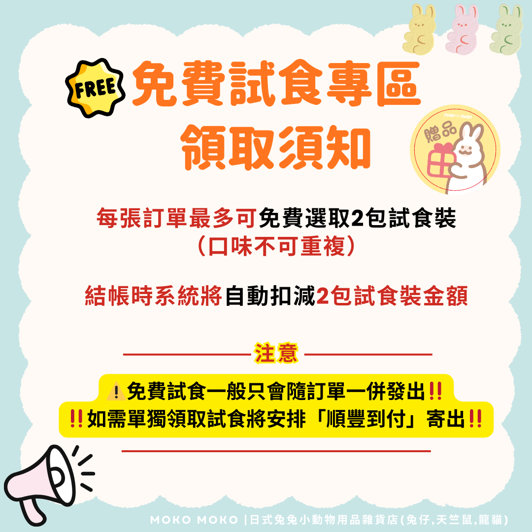 🎁全新「免費試食專區」登場|主糧・牧草・小食先試後買✨