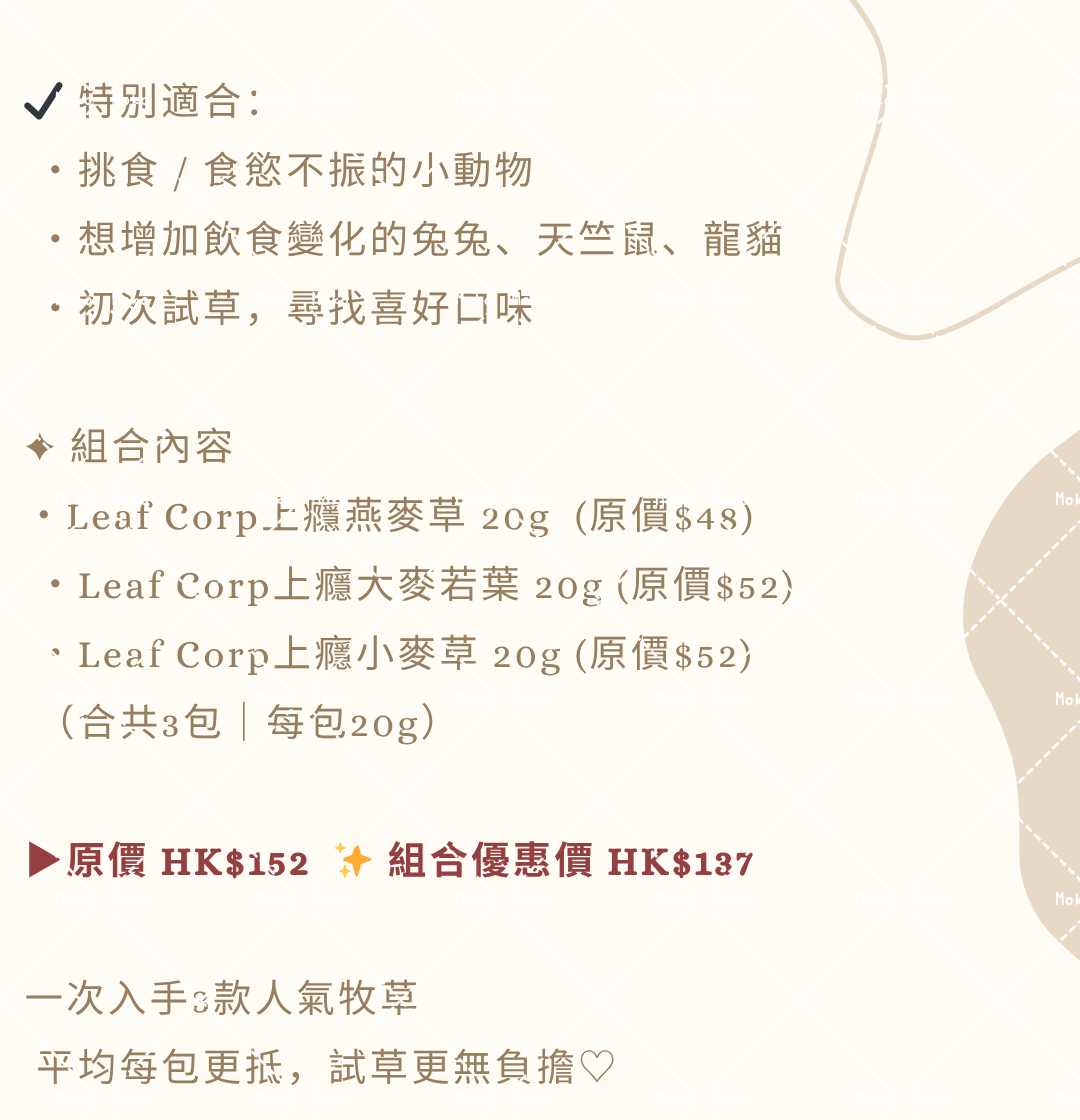 ✱上癮牧草20g組合包括以下商品: