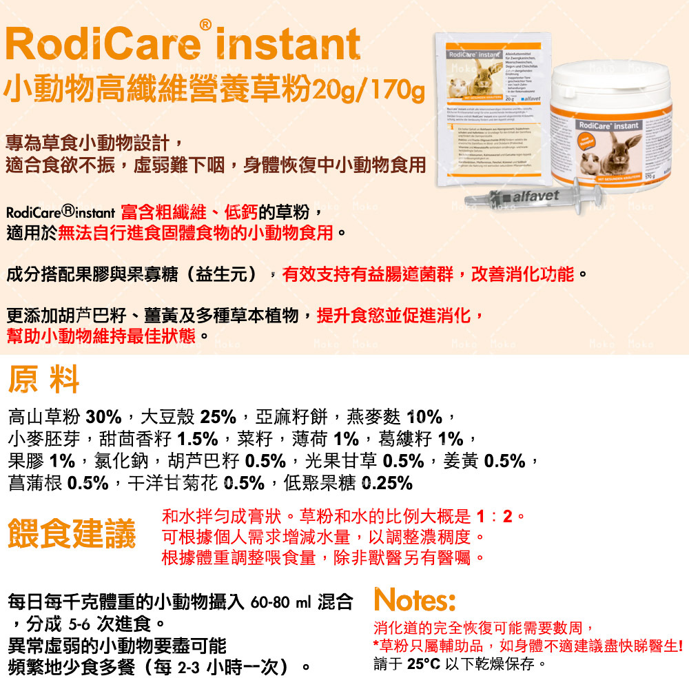 ⭕️RodiCare® instant 專為草食小動物設計,適合食欲不振,虛弱難下咽,身體恢復中小動物食用