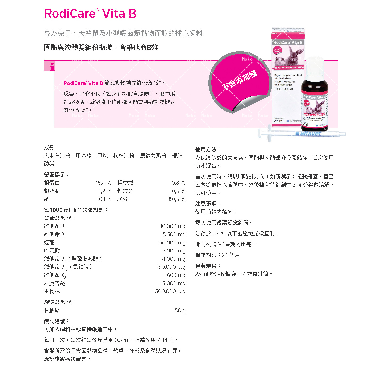 ⭕️RodiCare®Vita B專為小動物設計,有效補充維他命B,幫助改善壓力或飲食不均衡引起的營養缺乏