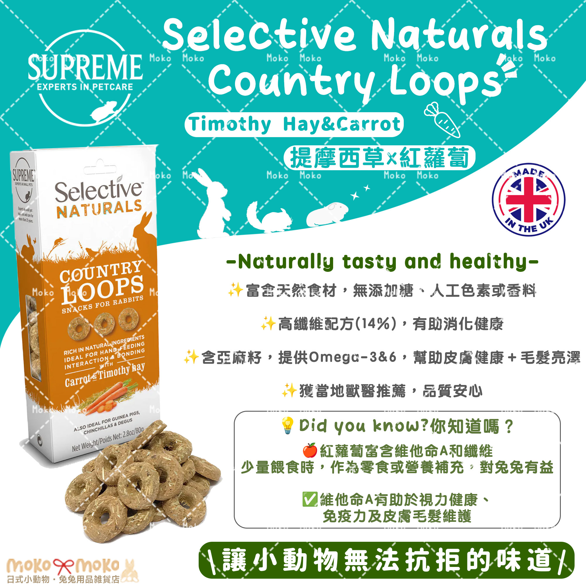🥕Country Loops以提摩西草與紅蘿蔔為主,由英國薩福克自家烘焙,高纖維(14%),支援牙齒健康與消化功能